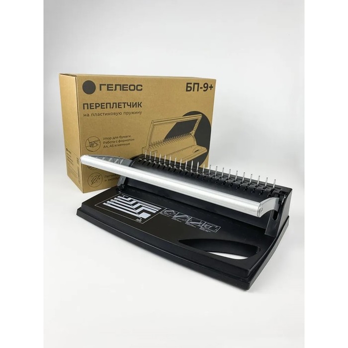 Брошюровщик для пластиковой пружины, перфорация до 9 листов, переплетение до 170 листов, Гелеос "БП-9"