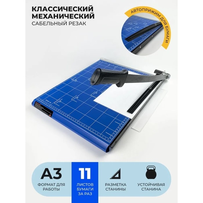 Резак сабельный A3, резка до 12 листов, длина реза 460 мм, металлическая основа, Гелеос РС A3