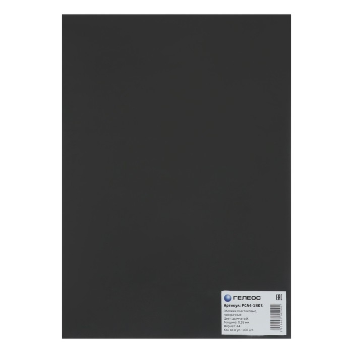 Обложки для переплета A4, 180 мкм, 100 листов, пластиковые, прозрачные дымчатый, Гелеос