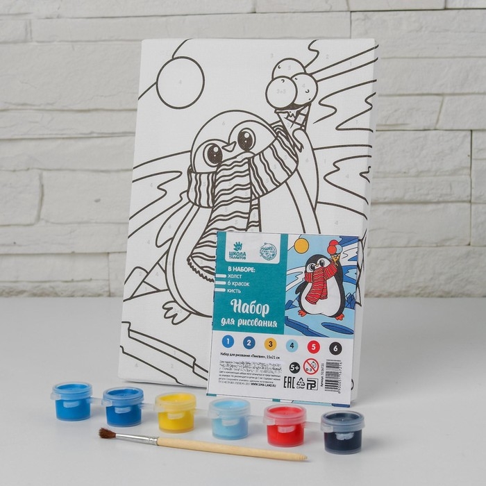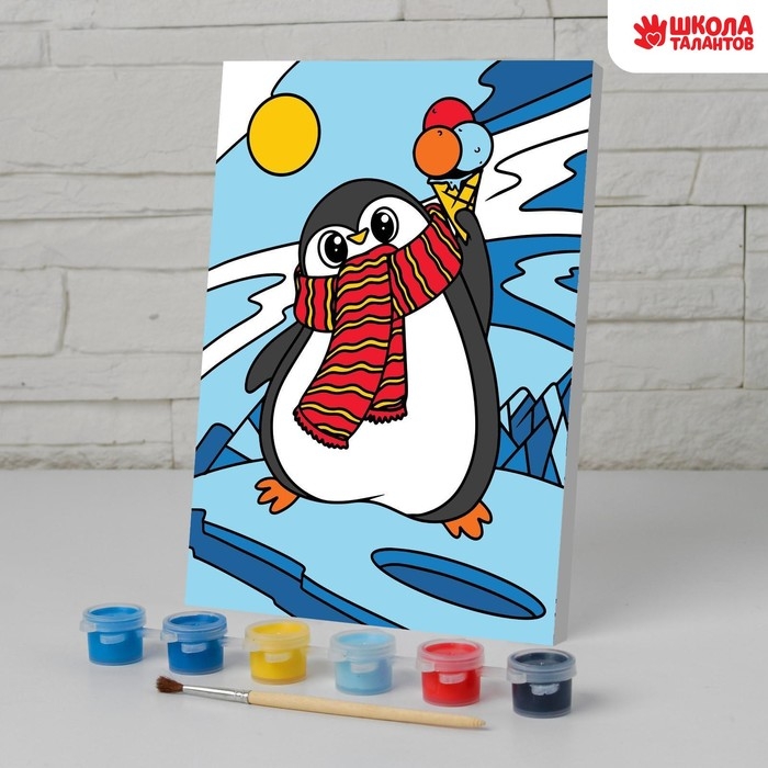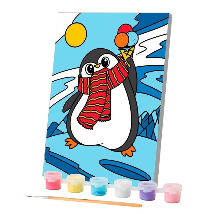 Картина по номерам на холсте с подрамником на новый год «Пингвин», 21 х 15 см