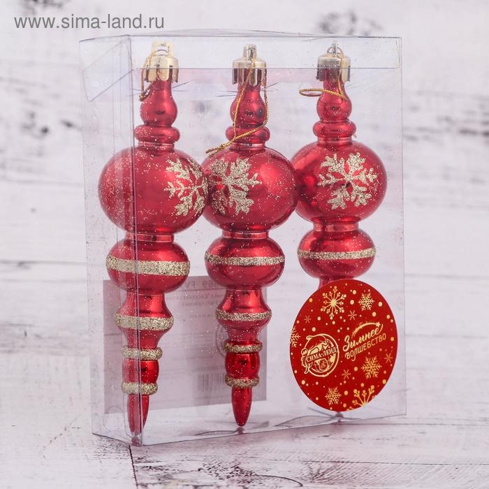 Украшение ёлочное "Сосулька со снежинкой" (набор 3 шт) 3,5х12 см, красный