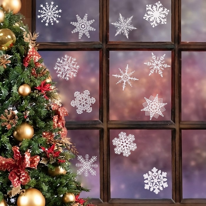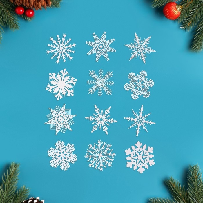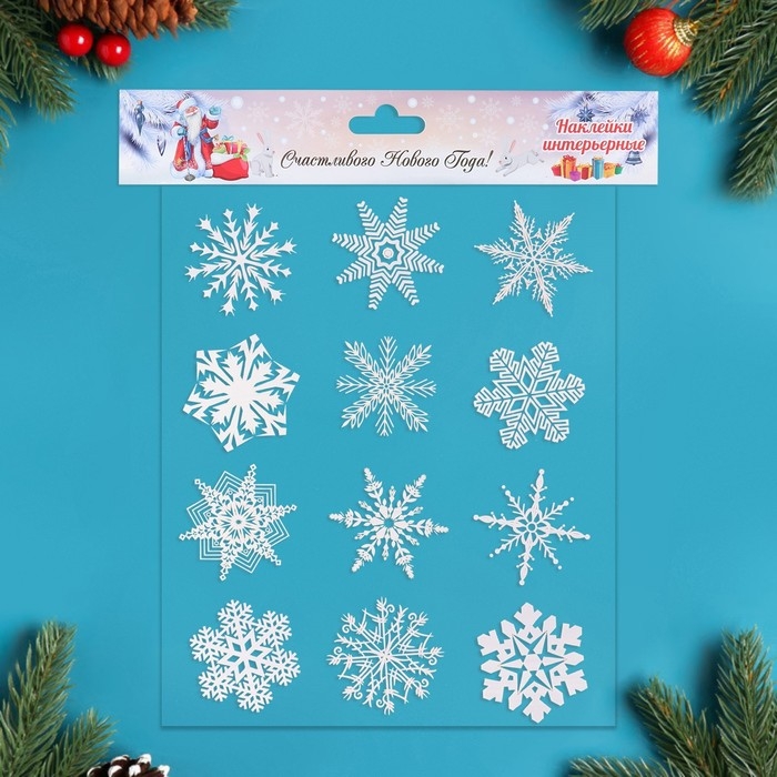 Набор наклеек новогодних "Снежинки" белые, 29,2 х 38,1 см