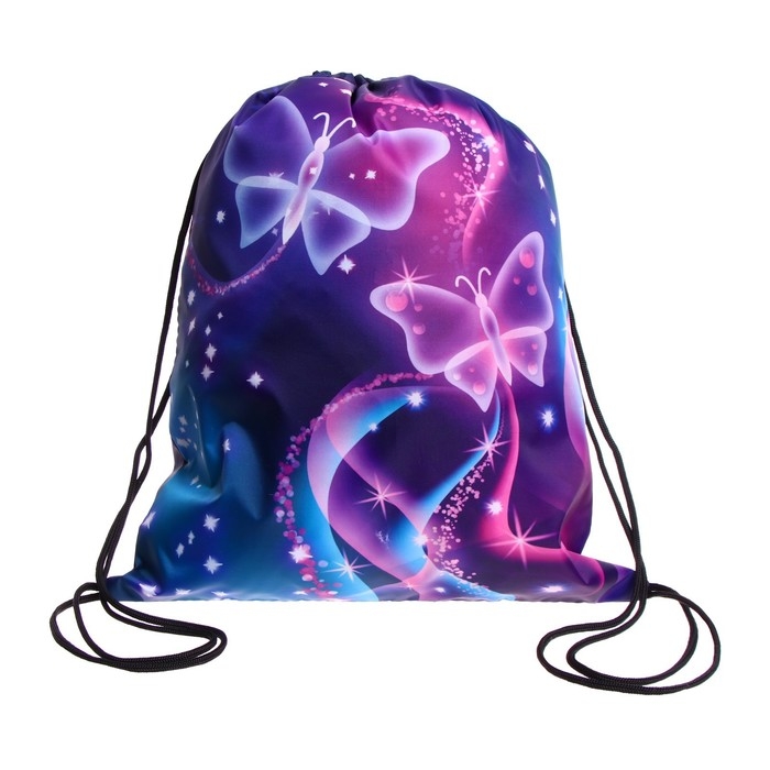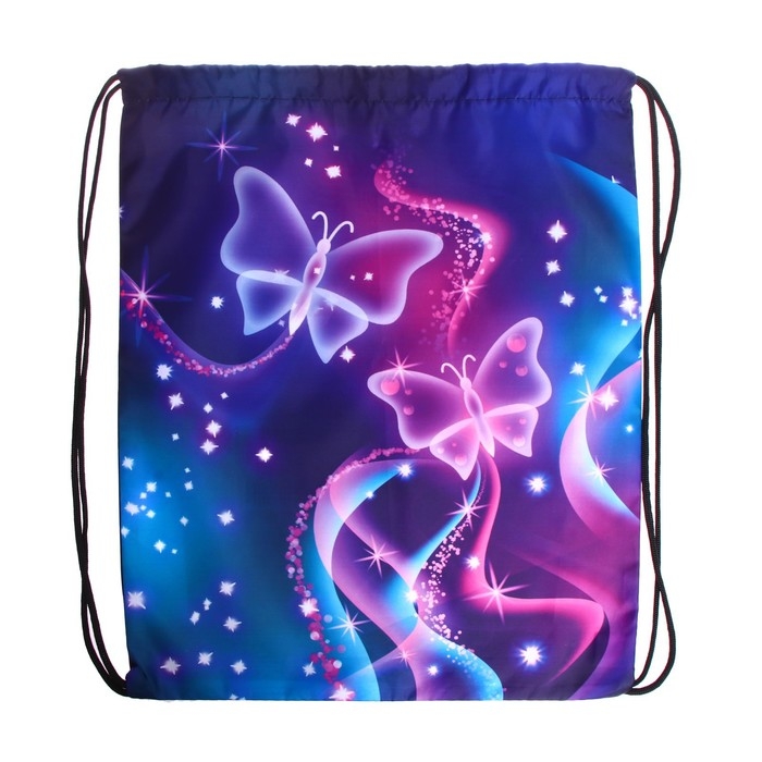 Мешок для обуви 420 х 340 мм, Calligrata МСО-5С, (мягкий полиэстер, плотность 210D), "Бабочки"