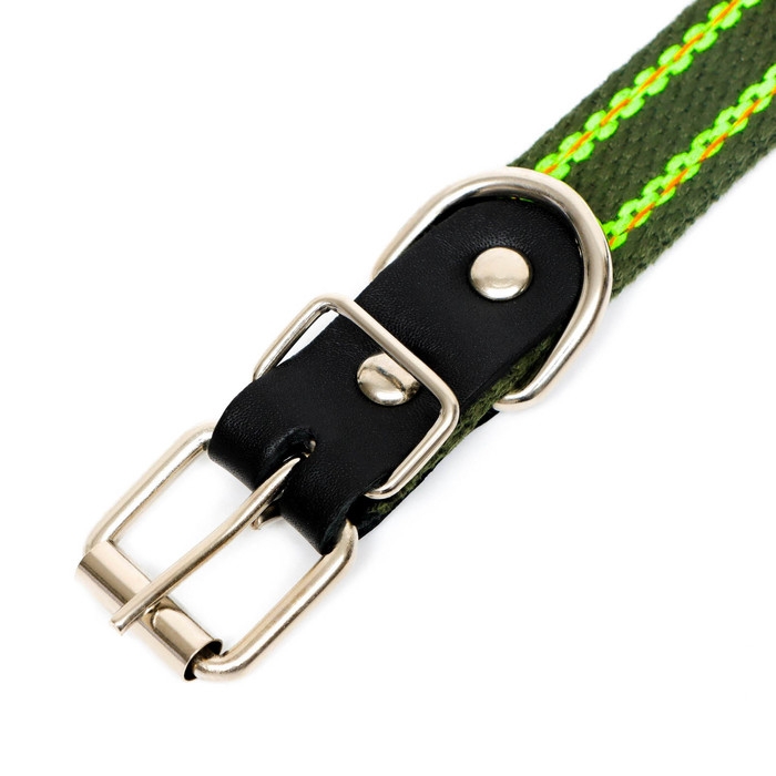 Ошейник брезентовый безразмерный двухслойный, 50 х 2 см, ОШ 22-45 см, хаки/зелёный
