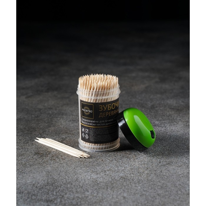 Зубочистки из берёзы Magistro, 200 шт, пластиковая баночка, крышка с дозатором