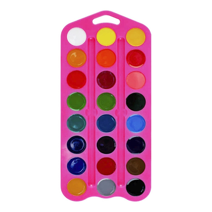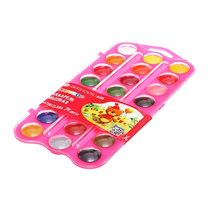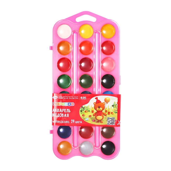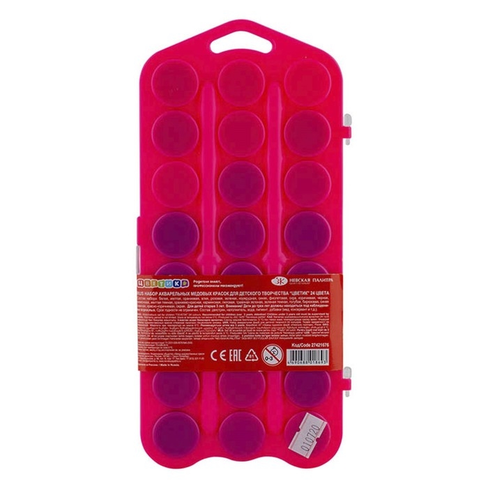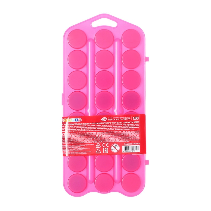 Акварель медовая 24 цвета, ЗХК "Цветик", без кисти, розовый пластиковый футляр, 27421676