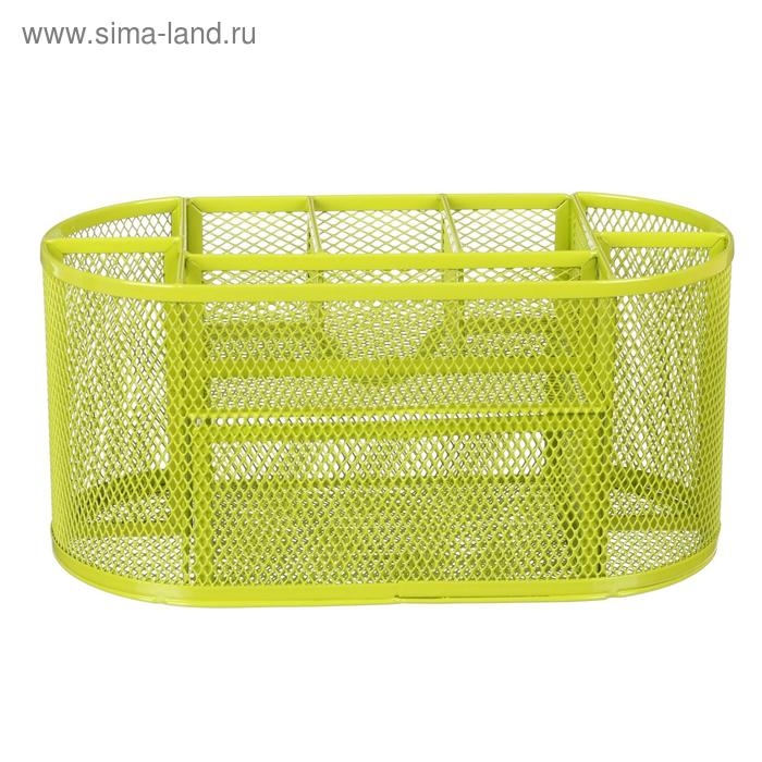 Подставка для канцелярских мелочей 9 отделений, сетка металл, зелёная