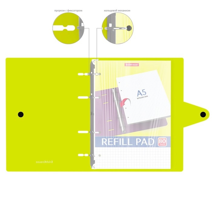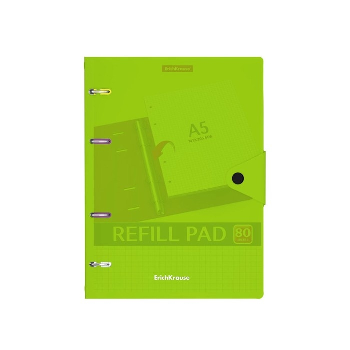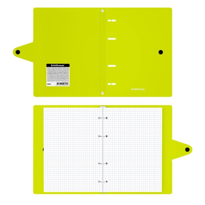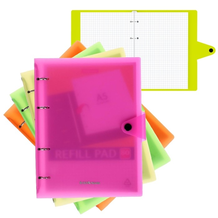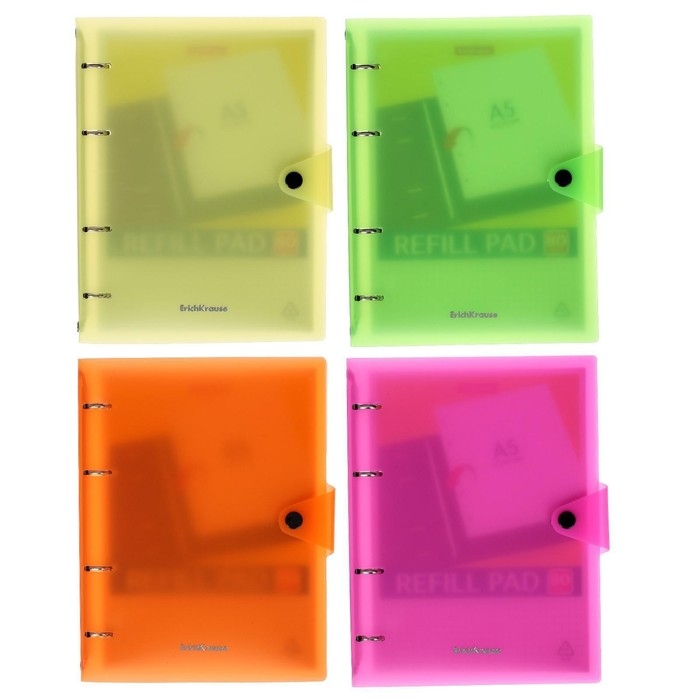 Тетрадь на кольцах, 80 листов в клетку, ErichKrause Neon, пластиковая обложка, на кнопке, блок офсет 100% белизна, МИКС