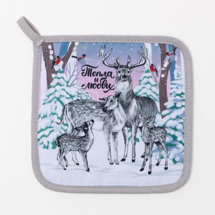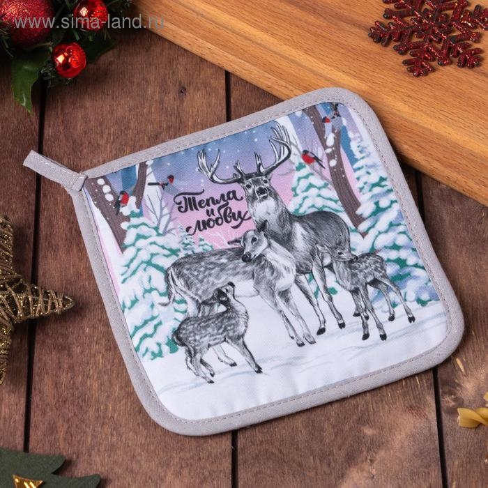Новый год. Прихватка «Тепла и любви» 17х17 35% хл,65% п/э,ватин 250г/м2