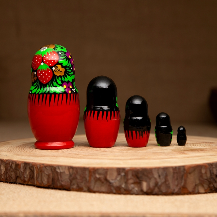 Матрёшка «Рябинка», чёрный платок, 5 кукольная, 18 см