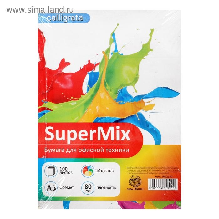 Бумага цветная А5, 100 листов Calligrata Пастель+Интенсив, 10 цветов, 80 г/м²