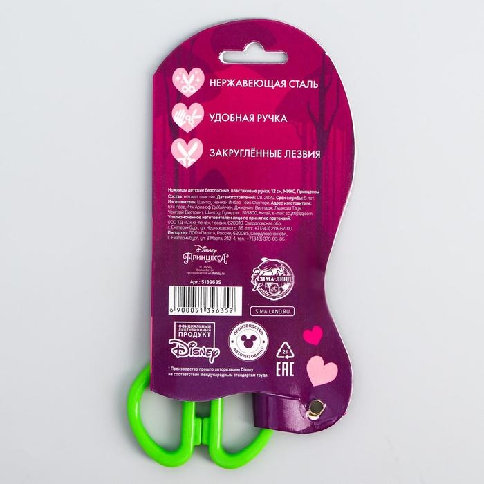 Ножницы детские 12 см, безопасные, пластиковые ручки, Принцессы, МИКС