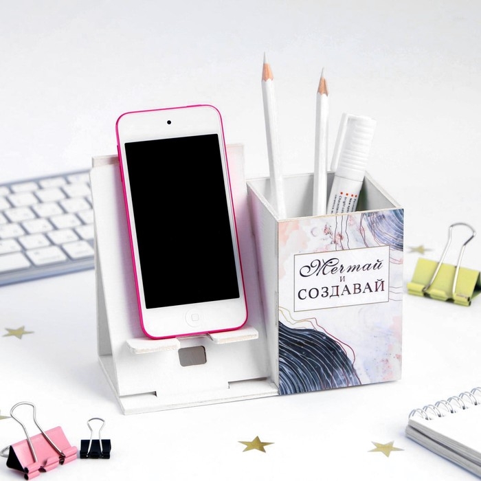 Органайзер для канцелярии с подставкой под телефон «Мечтай»