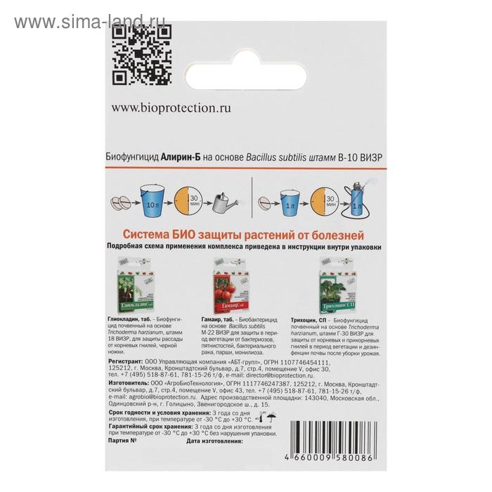 Биологический фунгицид "Алирин-Б", таблетки, 20 шт