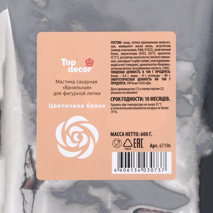 Мастика сахарная Ванильная (цветочная белая), 600 г