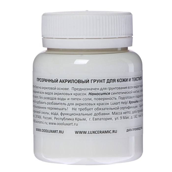 Грунт по коже и ткани, акриловый, прозрачный, 80 мл, Luxart Leather, база для колорирования и смешивания