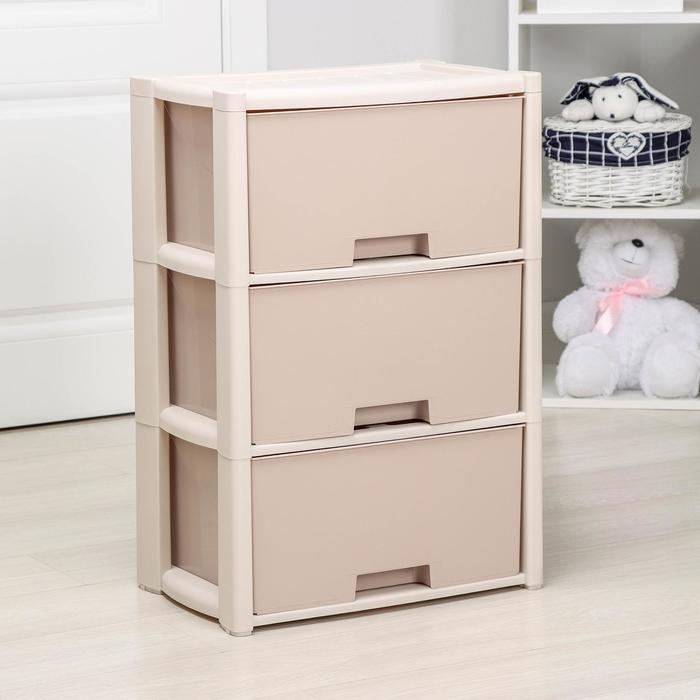 С помощью практичного пластикового комода вы правильно организуете хранение вещей. Изделие имеет жёсткую конструкцию за счёт цельных боковых стенок. Отсутствие острых углов делает его безопасным для ребёнка. Комод изготовлен из экологически чистого материала, не содержит вредных веществ.