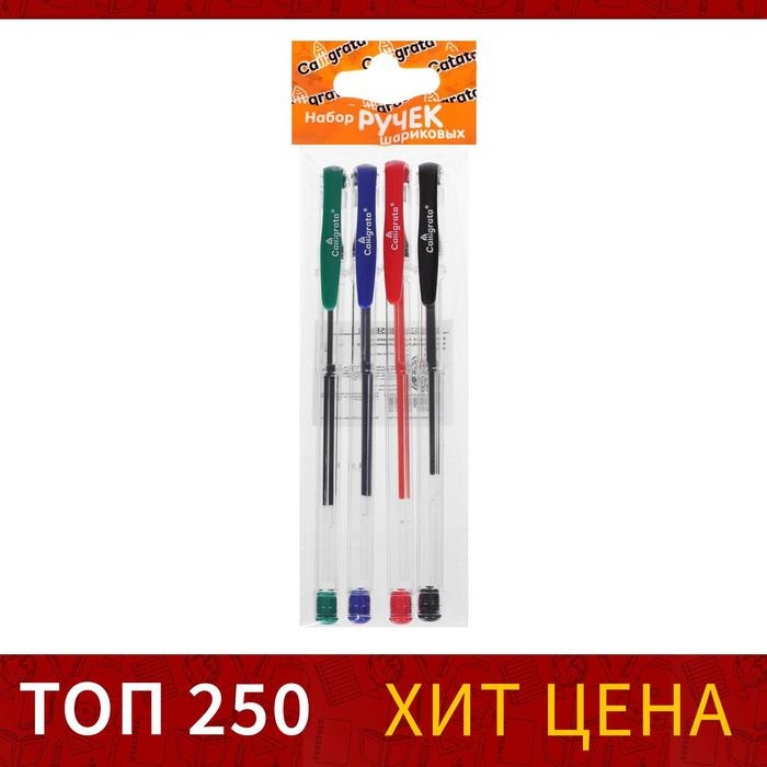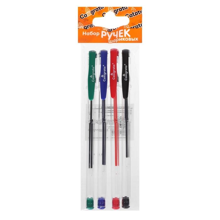 Набор гелевых ручек 4 цвета, стержень синий, красный, чёрный, зелёный, корпус прозрачный