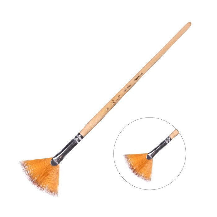 Кисть Веерная Синтетика ЗХК "Сонет" № 6, двухцветная (короткая ручка с лаковым покрытием)