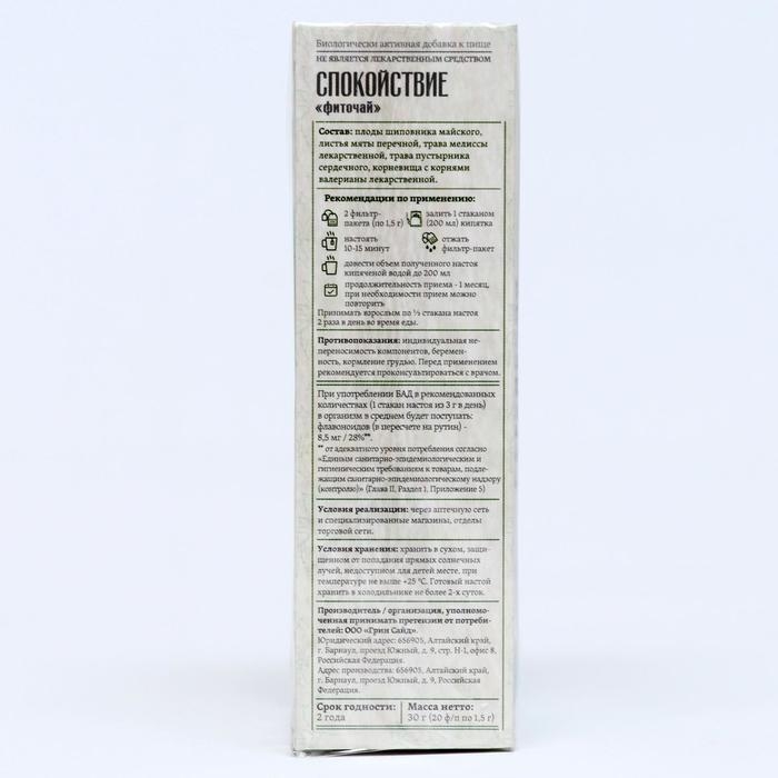 Фитосбор спокойствие, 20 фильтр пакетов по 1.5 г