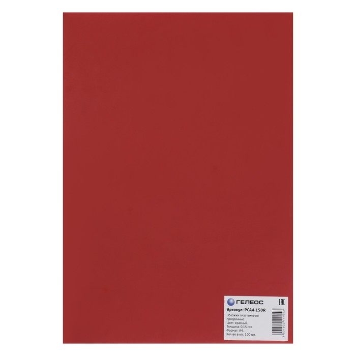 Обложки для переплета A4, 150 мкм, 100 листов, пластиковые, прозрачные красные, Гелеос