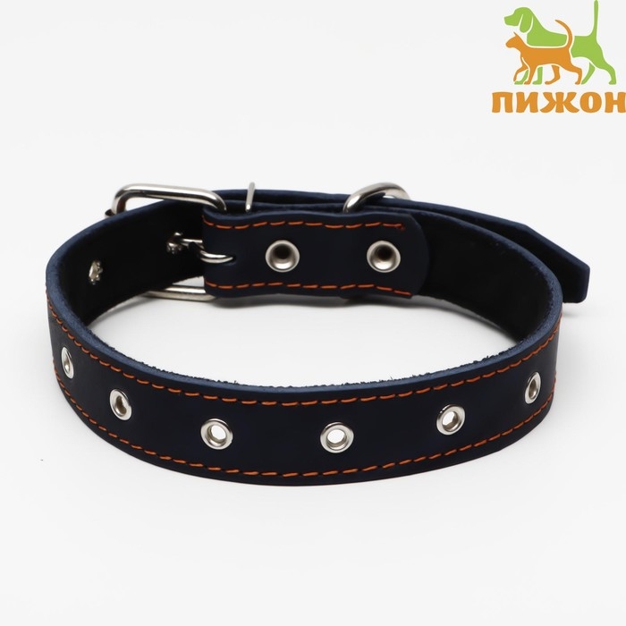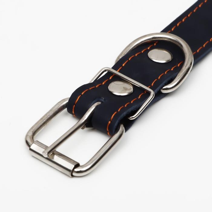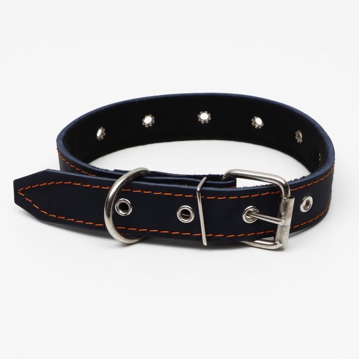 Ошейник кожаный на синтепоне, безразмерный, 65 х 3 см, ОШ 22-55 см, синий