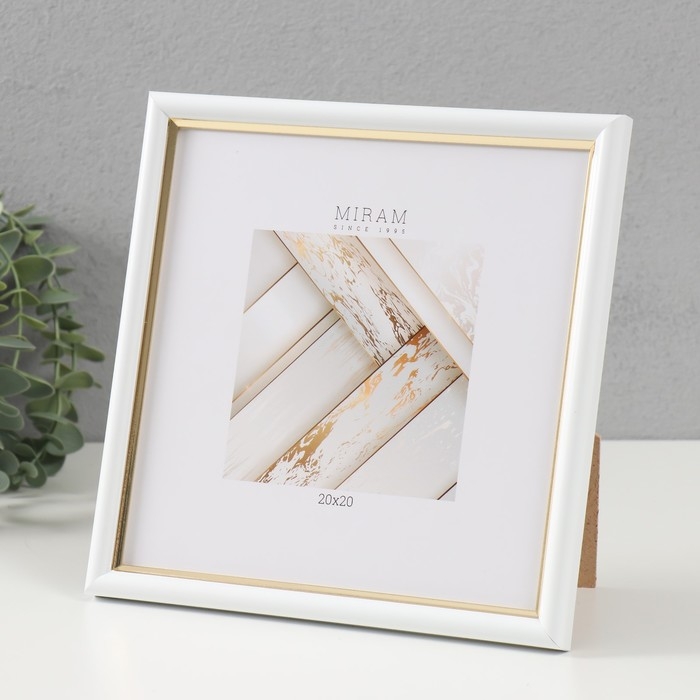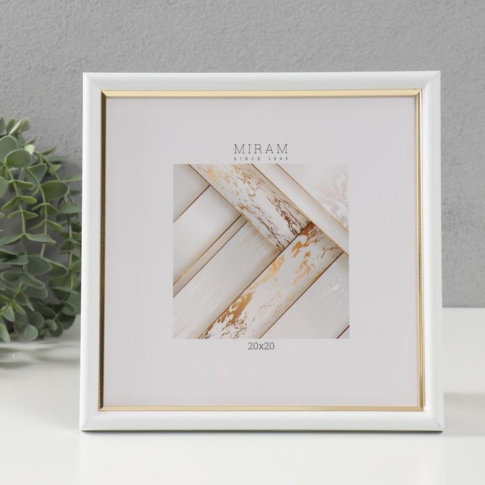 Фоторамка пластик "МИРАМ" 20х20 см, 636461-22, белый с золотом (пластиковый экран)