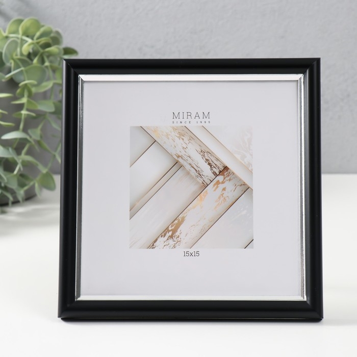 Фоторамка пластик Gallery 15х15 см, 636477-3, чёрный с серебром (пластиковый экран)