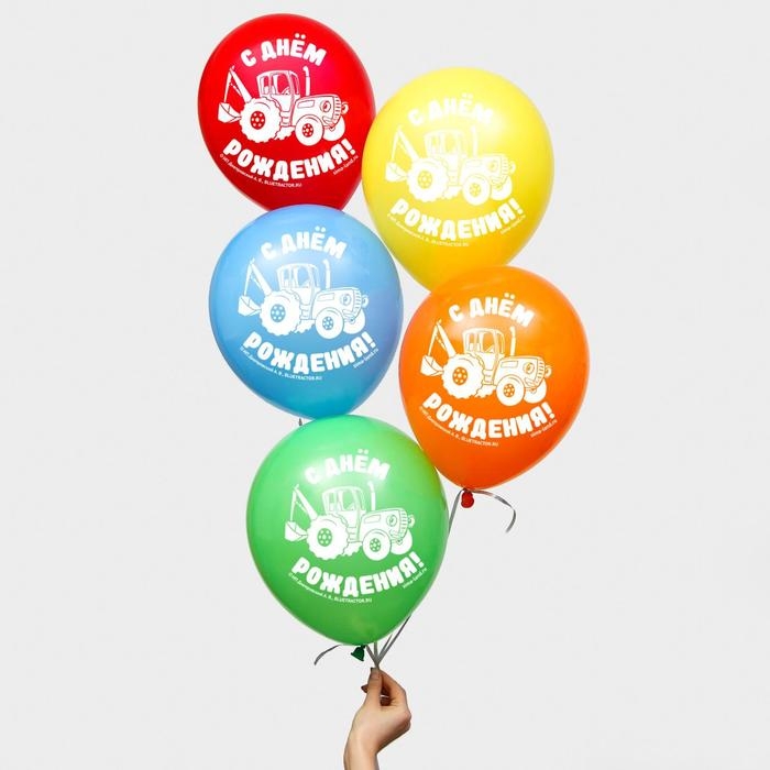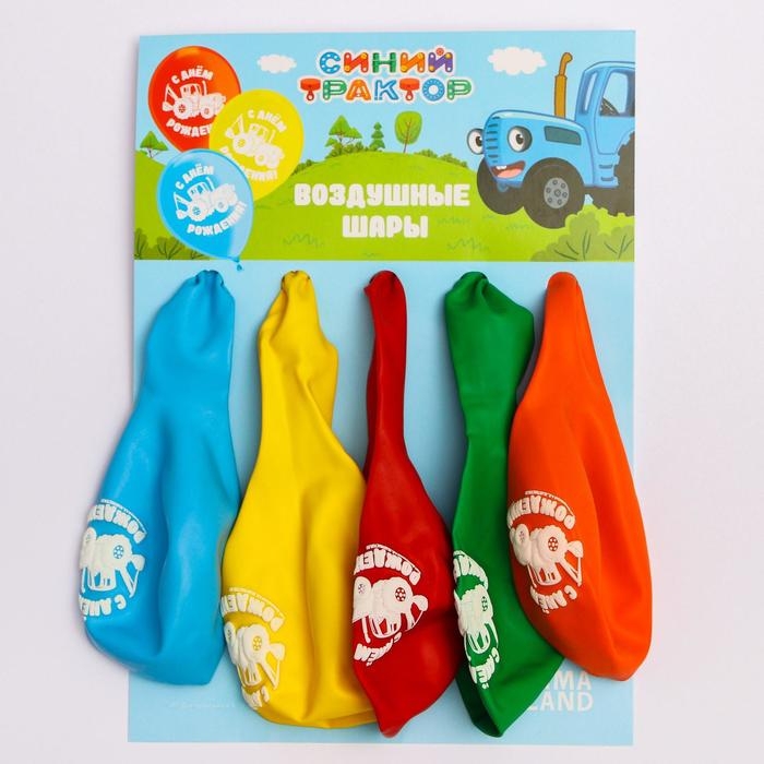 Шар воздушный "С Днем рождения!", 12 дюйм, латексный, 5 штук, Синий трактор