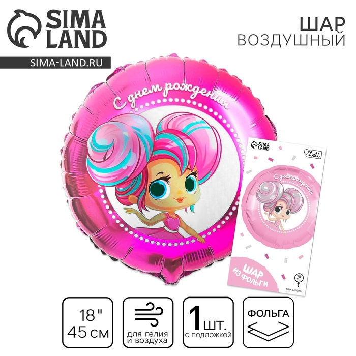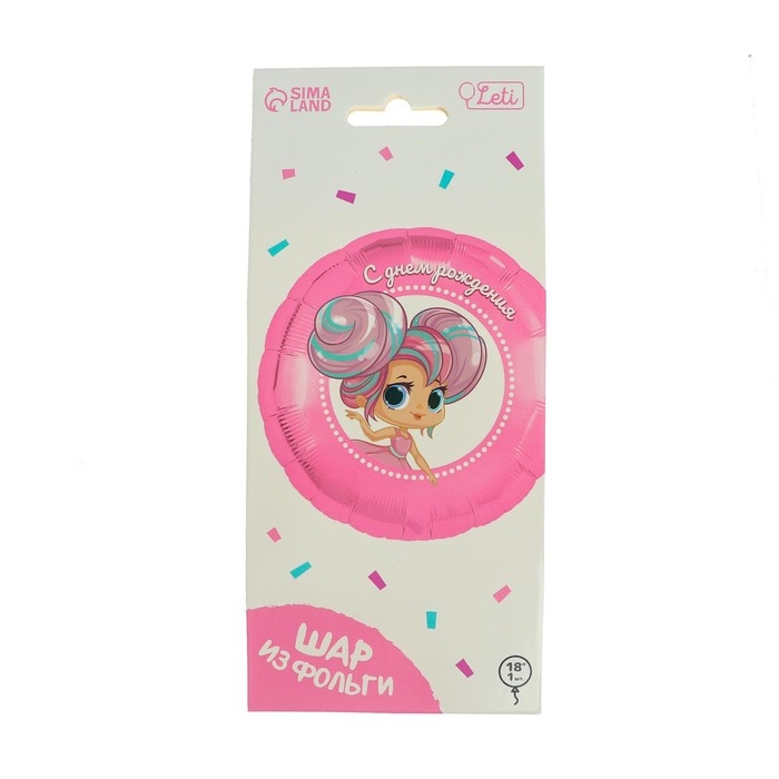 Воздушный шар фольгированный 18" «С днём рождения», куколка, круг, с подложкой