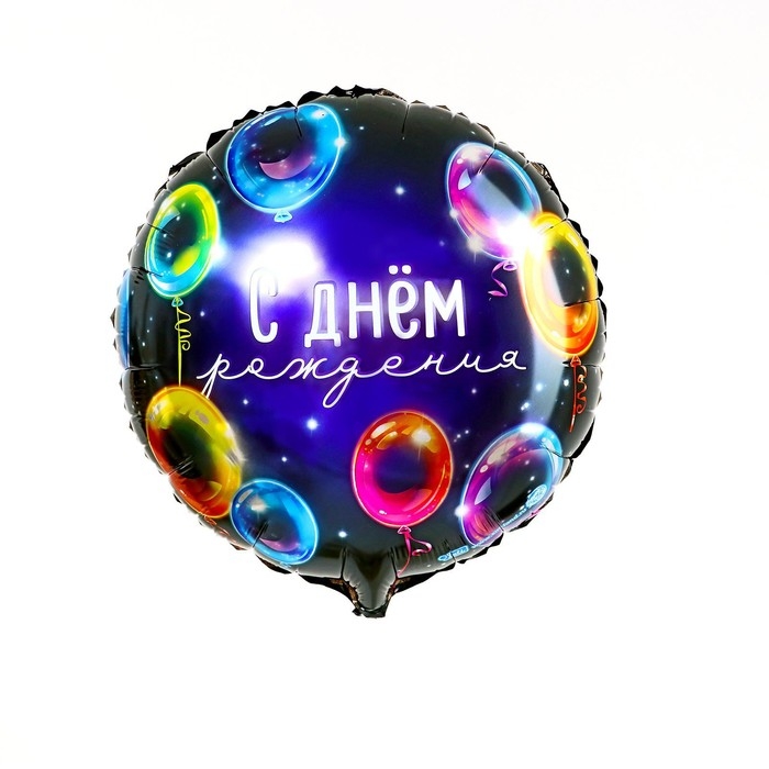 Воздушный шар фольгированный 18" «С днём рождения», неон, круг