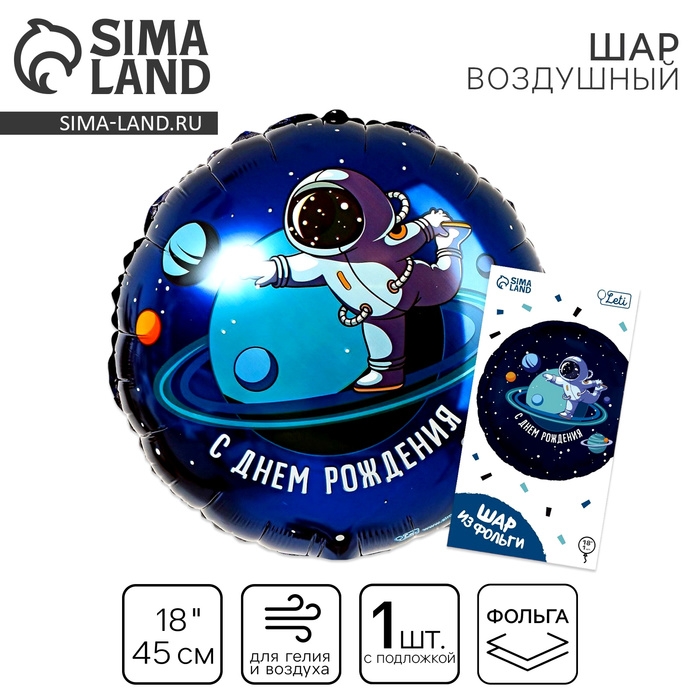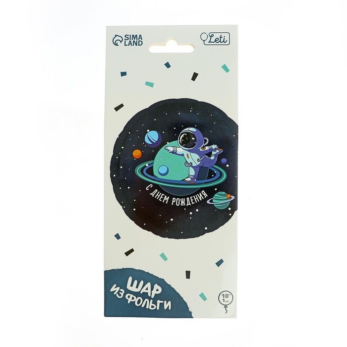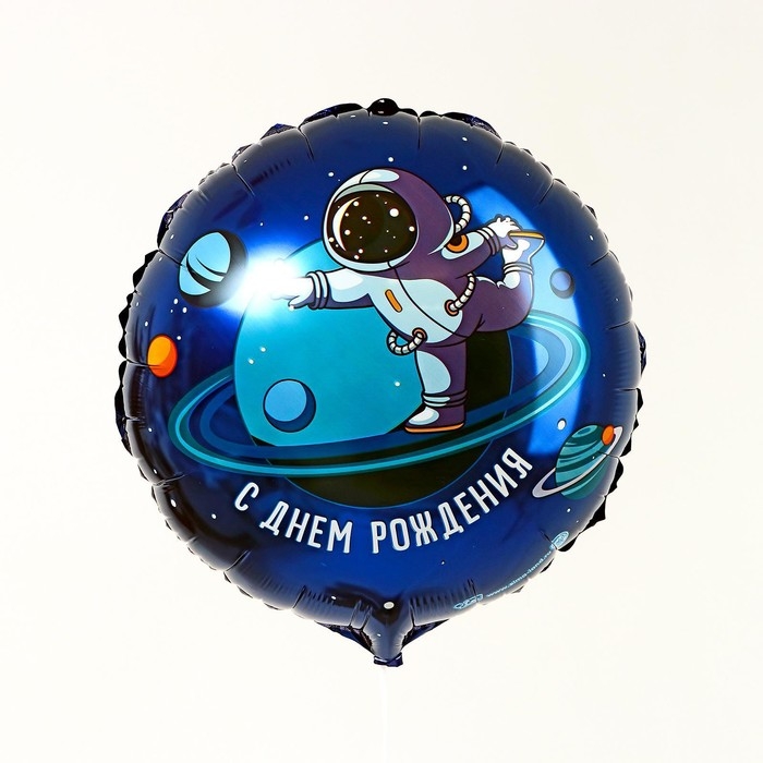 Воздушный шар фольгированный 18" «С днём рождения», космонавт, круг, с подложкой