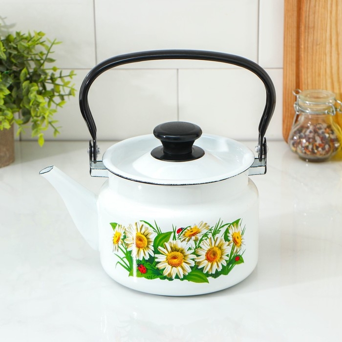 Чайник эмалированный цилиндрический, 1,5 л, деколь МИКС, цвет белый
