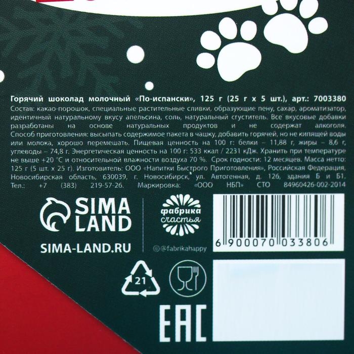 Горячий шоколад «Кайфуй по-зимнему», вкус: по-испански, 125 г. (25 г. х 5 шт.)