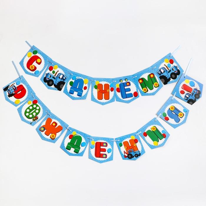 Гирлянда на ленте "С Днем Рождения", длина 215 см, Синий Трактор