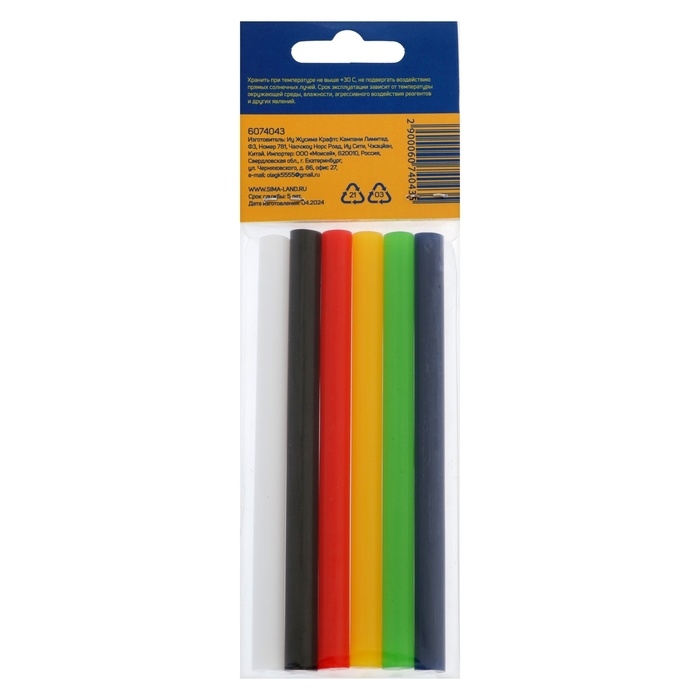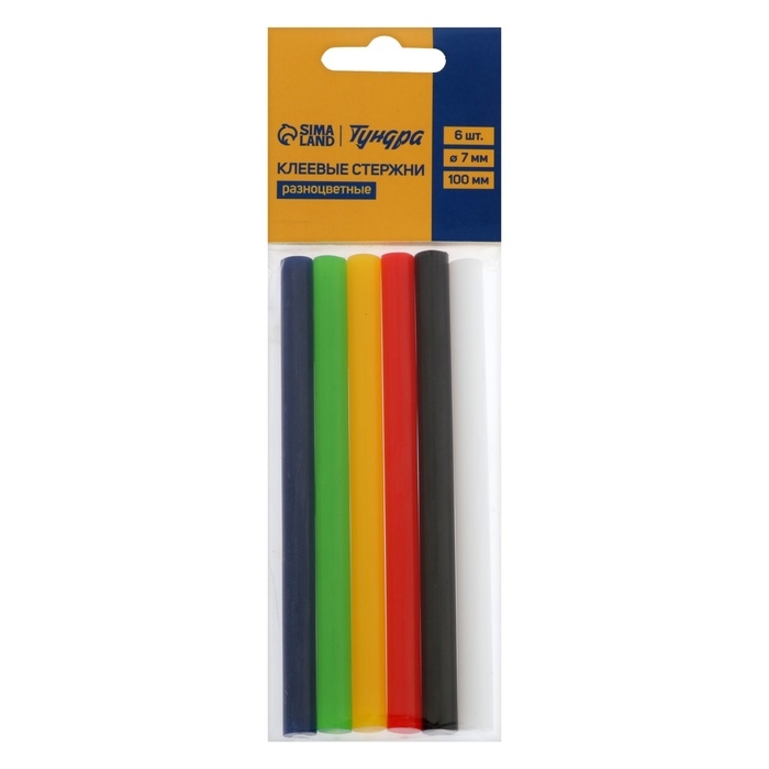 Клеевые стержни ТУНДРА, 7 х 100 мм, разноцветные, 6 шт.