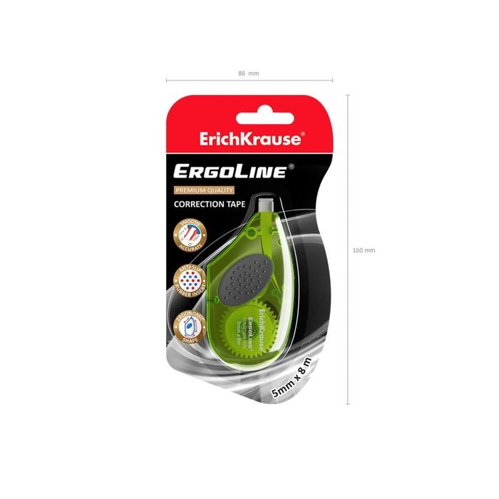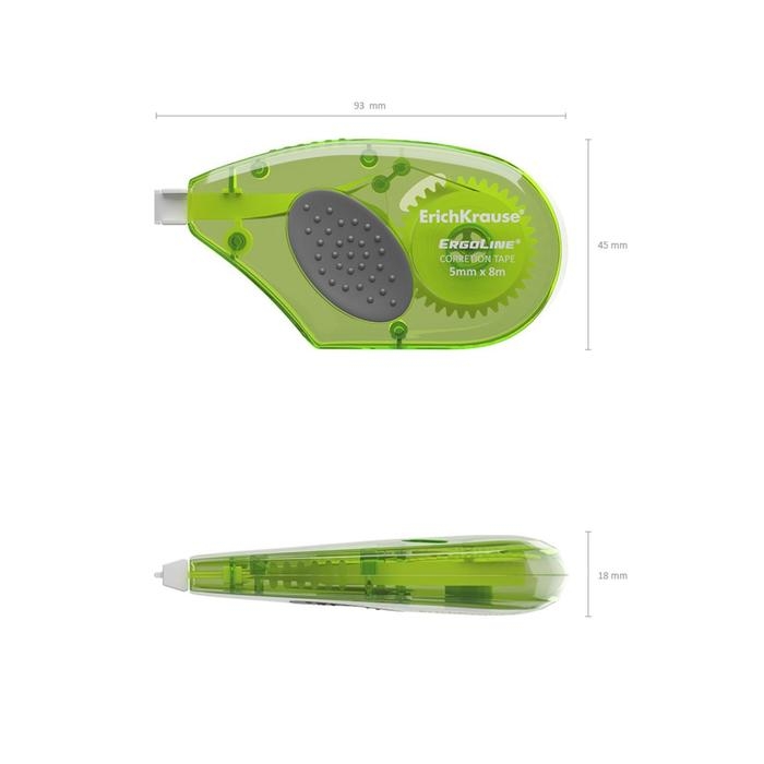 Корректирующая лента 5 мм х 8 м, ErichKrause ErgoLine, с резиновой вставкой, корпус салатовый, блистер