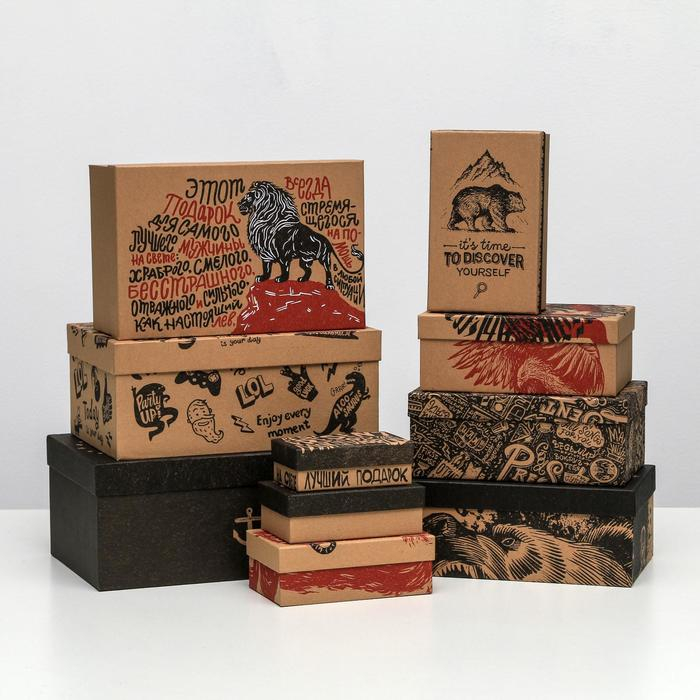 Набор крафтовых коробок 10 в 1, упаковка подарочная, «Брутальность», 12 х 7 х 4 - 32.5 х 20 х 12.5 см