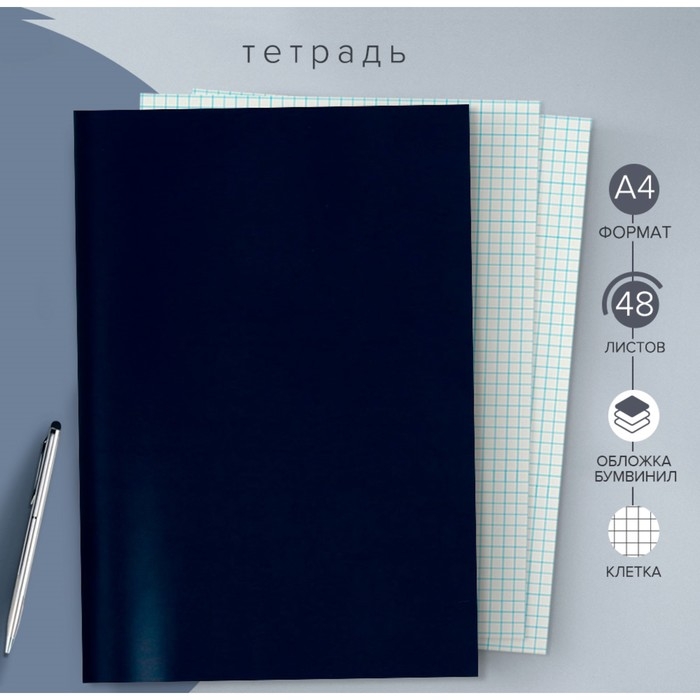 Тетрадь А4, 48 листов в клетку Calligrata, бумвинил, блок №2, белизна 75% (серые листы), эконом, синий
