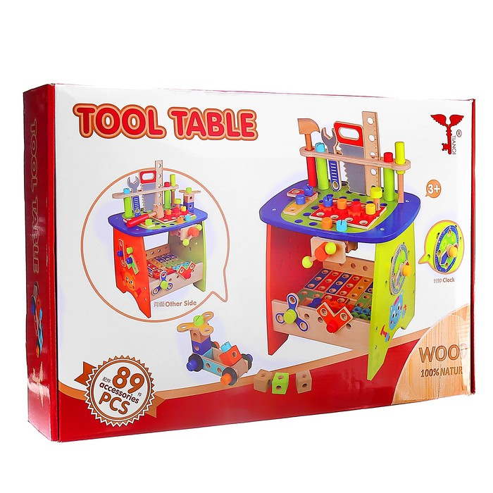 Деревянный конструктор в виде стола плотника — это первая встреча юного мастера с миром инструментов. Малыш непременно оценит оригинальную игрушку, ведь она такая яркая и приятная на ощупь.