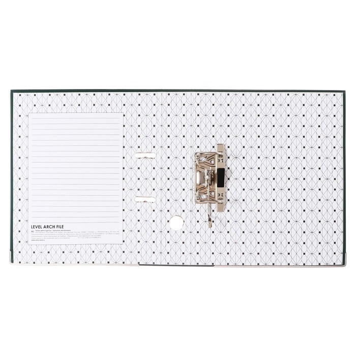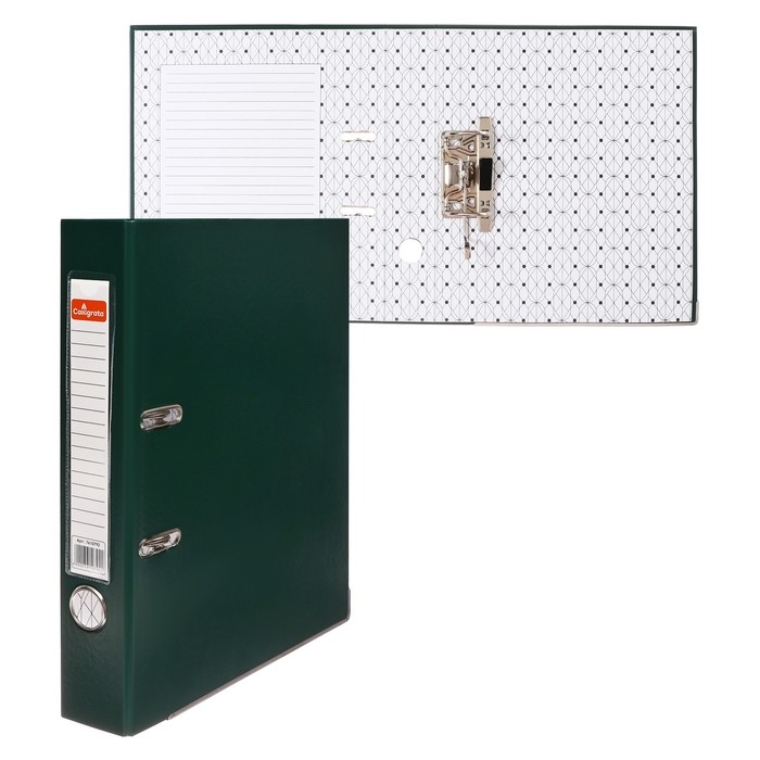 Папка-регистратор Calligrata с арочным механизмом изготовлена из плотного картона, с внешней стороны заламинированного полипропиленовой пленкой (РР) с текстурой "лен", внутри оклеена бумагой с алфавитно-цифровым полем для классификации на левой стороне.