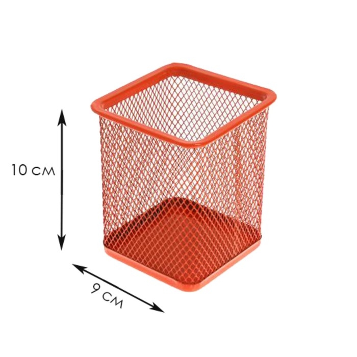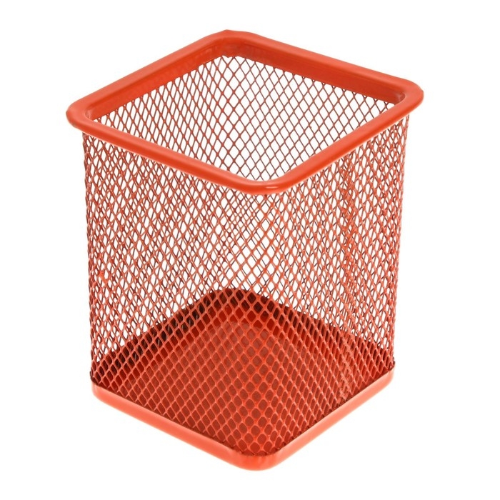 Стакан для пишущих принадлежностей, квадратный, сетка металлическая, оранжевый