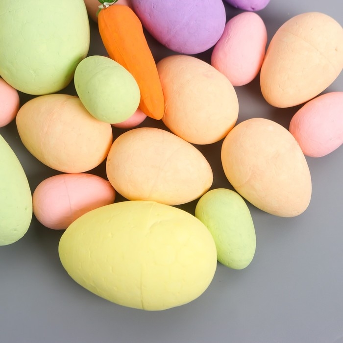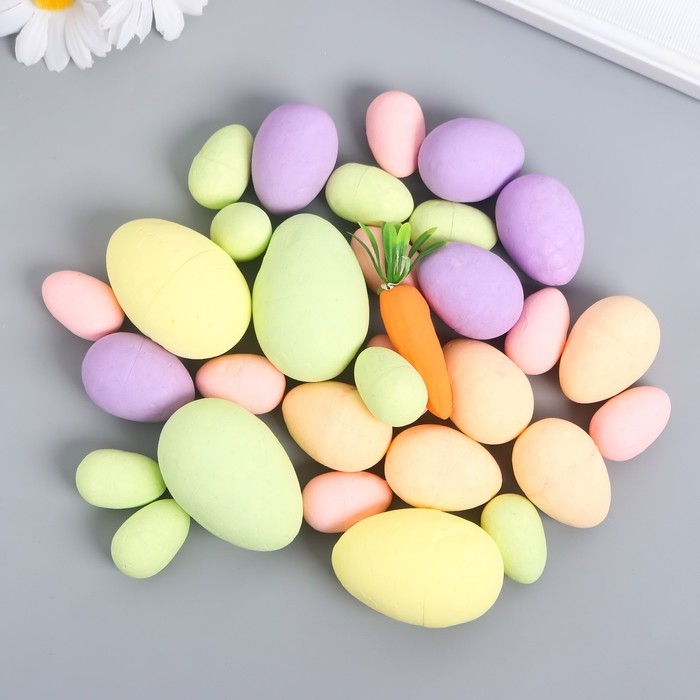 Декор пасхальный "Разноцветные яички с морковкой" набор 31 шт 4х6, 3х4, 2х3 см
