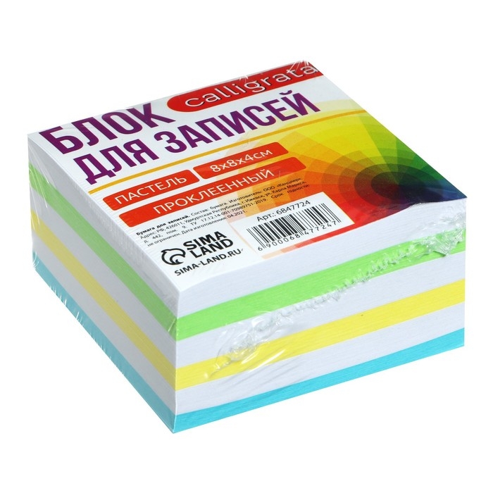 Блок бумаги д/записей на склейке 8*8*4 Calligrata Зебра: 3цв пастель 80г/м2, белая 65г/м2