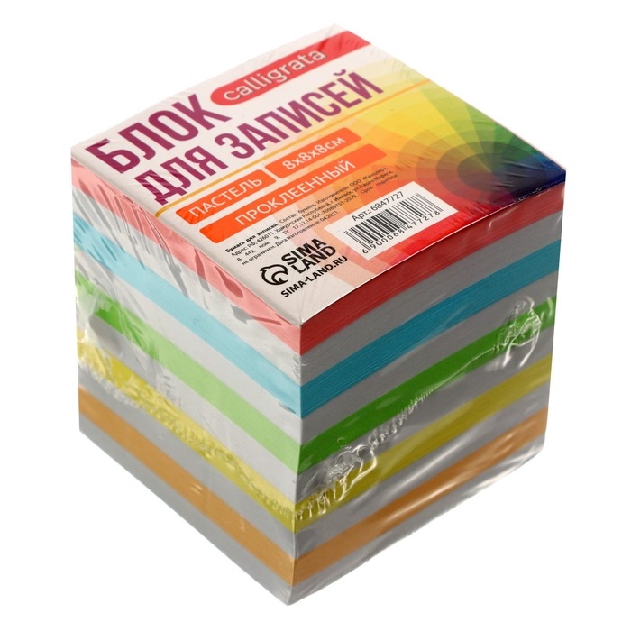 Блок бумаги д/записей на склейке 8*8*8 Calligrata Зебра: 5цв пастель 80г/м2, белая 65г/м2