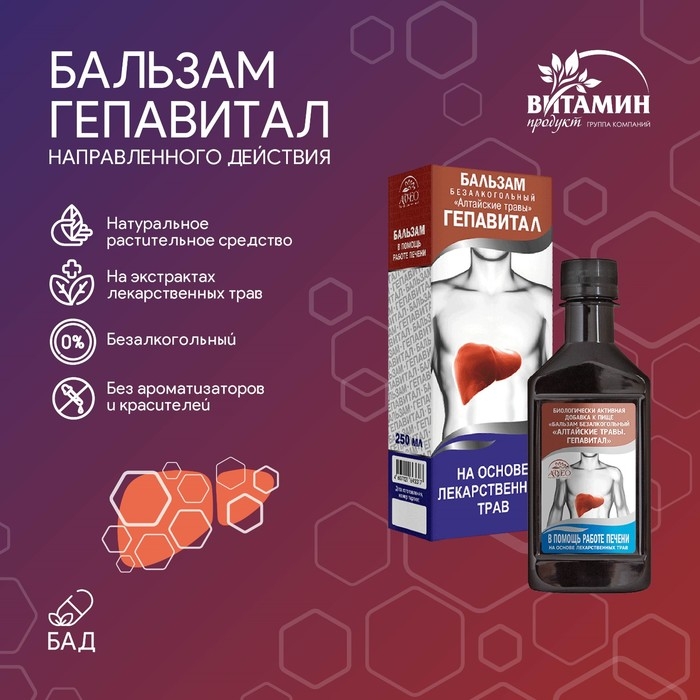 Благодаря богатому составу бальзам сибирский безалкогольный направленного действия «ГЕПАВИТАЛ» способствует нормализации функций печени и желчных путей, стимулирует обменные процессы.