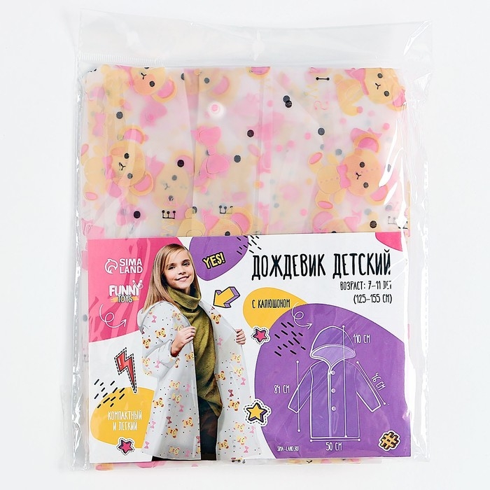 Дождевик детский «Мишка» (125-155 см)