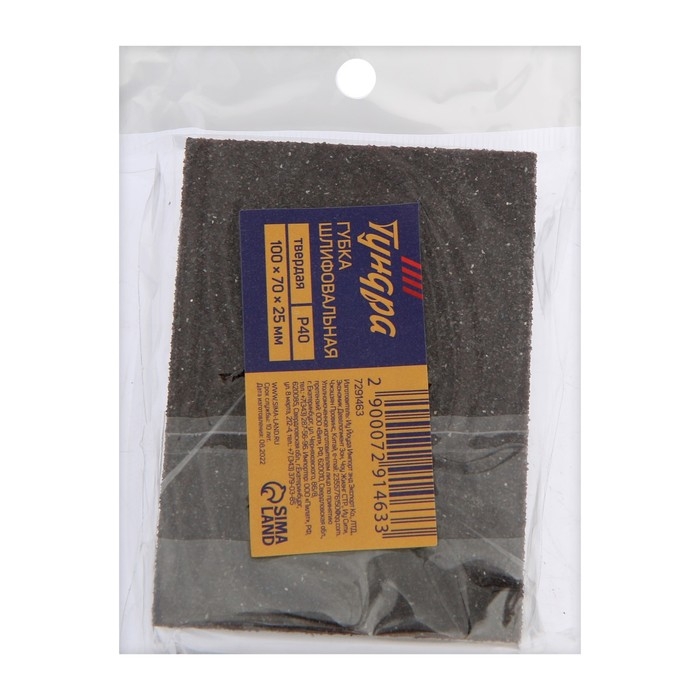 Губка абразивная шлифовальная ТУНДРА, твердая, 100 х 70 х 25 мм, P40