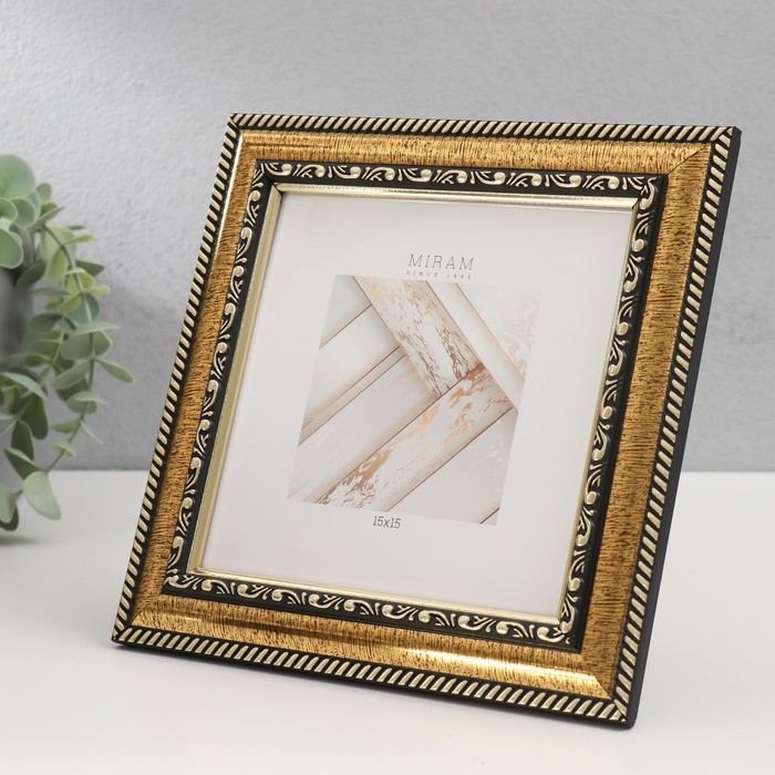 Фоторамка пластик "МИРАМ" 15х15 см золото (пластиковый экран)