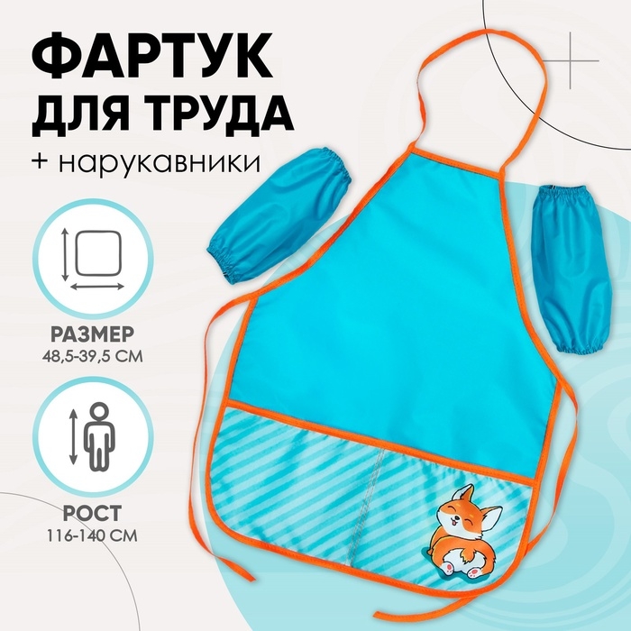 Фартук для труда + нарукавники, 485 х 395/250 х 160 мм, рост 116-146 см, Calligrata, "Корги"